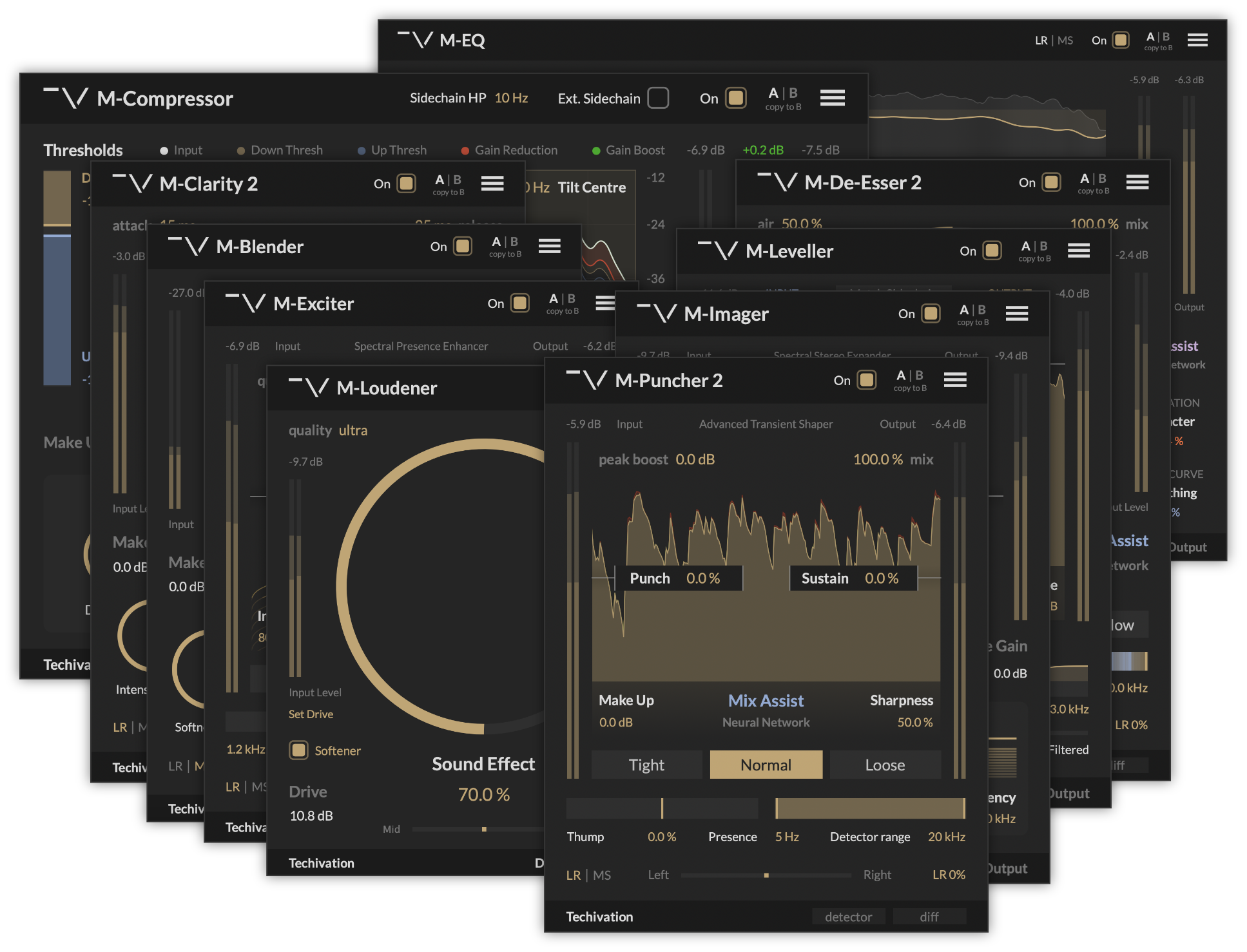 Get all ten Techivation M-series plug-ins at a discount and elevate your sound quality to the next level. Developed to the highest professional audio standards, these plug-ins utilise outstanding audio and software technologies to help you accelerate your workflow speed and significantly enhance your sound processing quality.